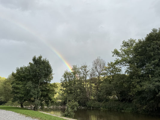 Regenbogen über dem Fluss auf – ein perfekter Abschluss eines ereignisreichen Tages.