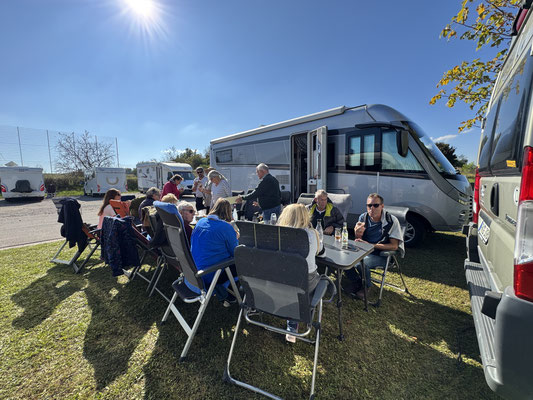 Zurück am Platz angekommen, konnten wir uns über einen wunderbaren Stellplatz am Wasser freuen. Als besonderes Highlight tauchte sogar ein