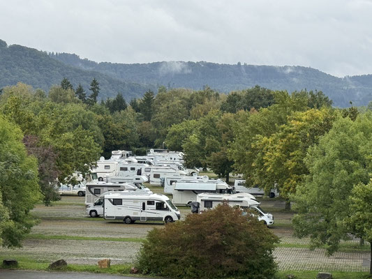 Am Stellplatz angekommen, war zunächst die Schranke geschlossen. Also fuhren wir kurz zur Touristinfo, um die Zugangsdaten zu erhalten und den Stellplatz zu bezahlen.